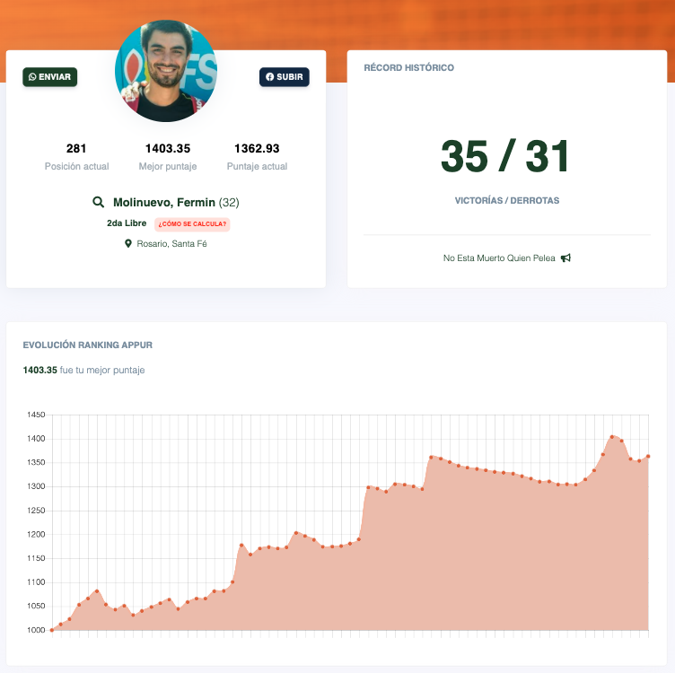 Evolucioná en el Ranking a medida que juegues, todos los partidos suman, todos los niveles son competitivos.