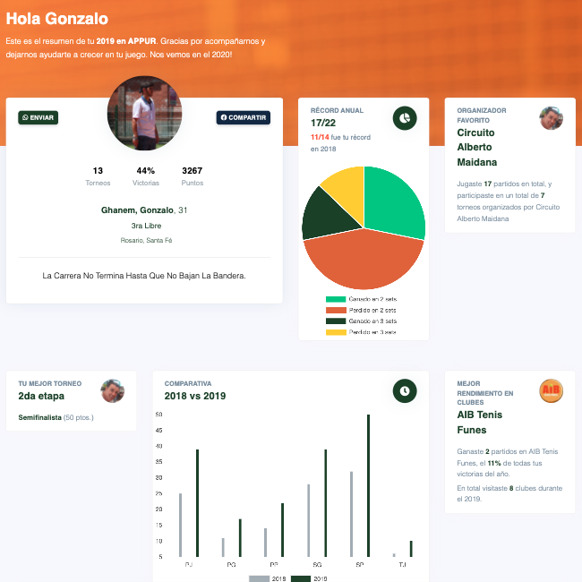 Un repaso por tus números al final cada temporada, para que puedas comparar tu desempeño y compartirlo con tus amigos